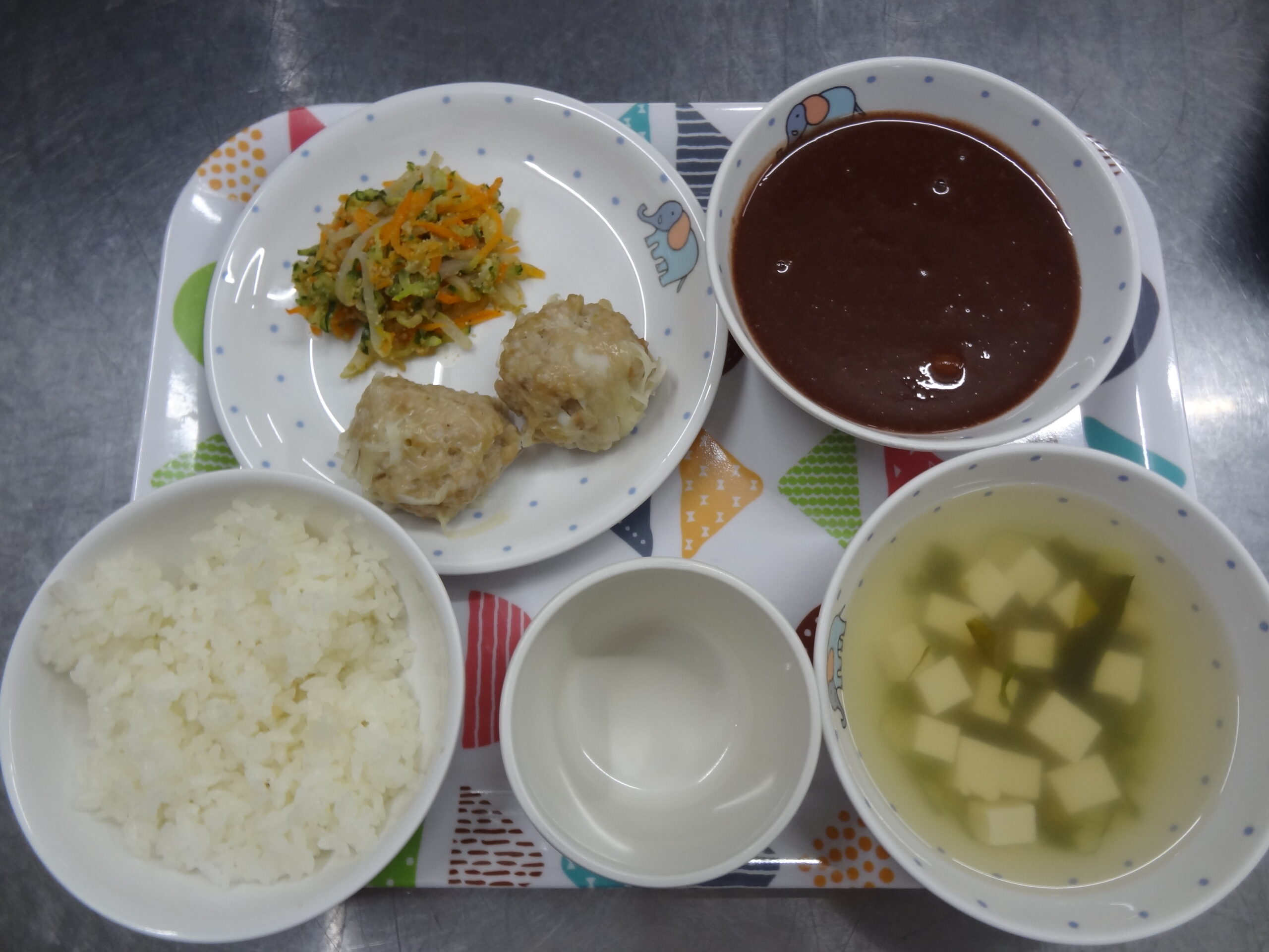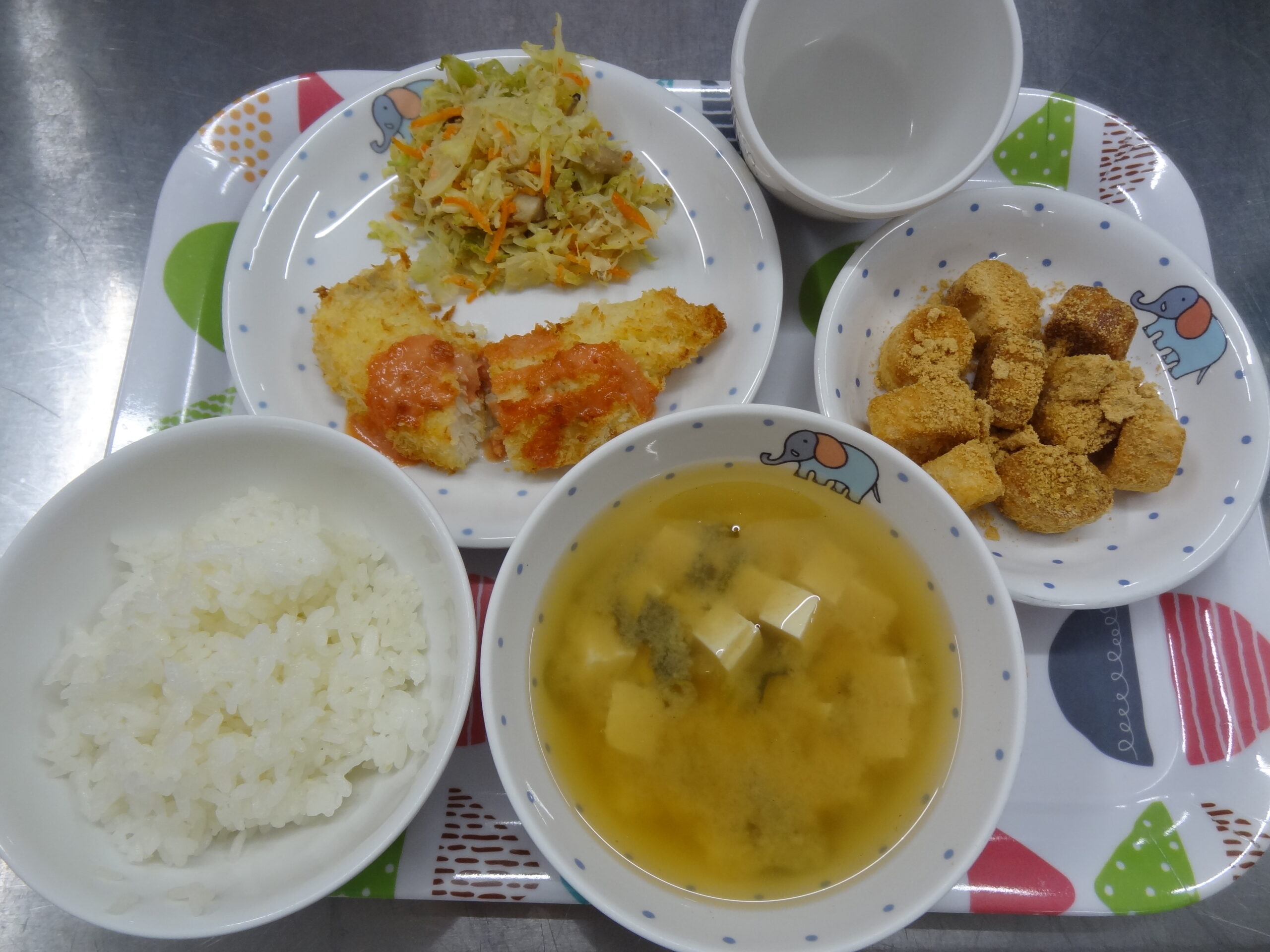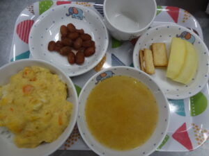 1月5日の給食 新年を迎えました 今日の給食は御飯 肉じゃが 切干大根の酢の物です。 おやつはベーコンとチーズのスコーン 牛乳です。 今年も安心安全でおいしい給食を提供いたしますので、よろしくお願い致します。